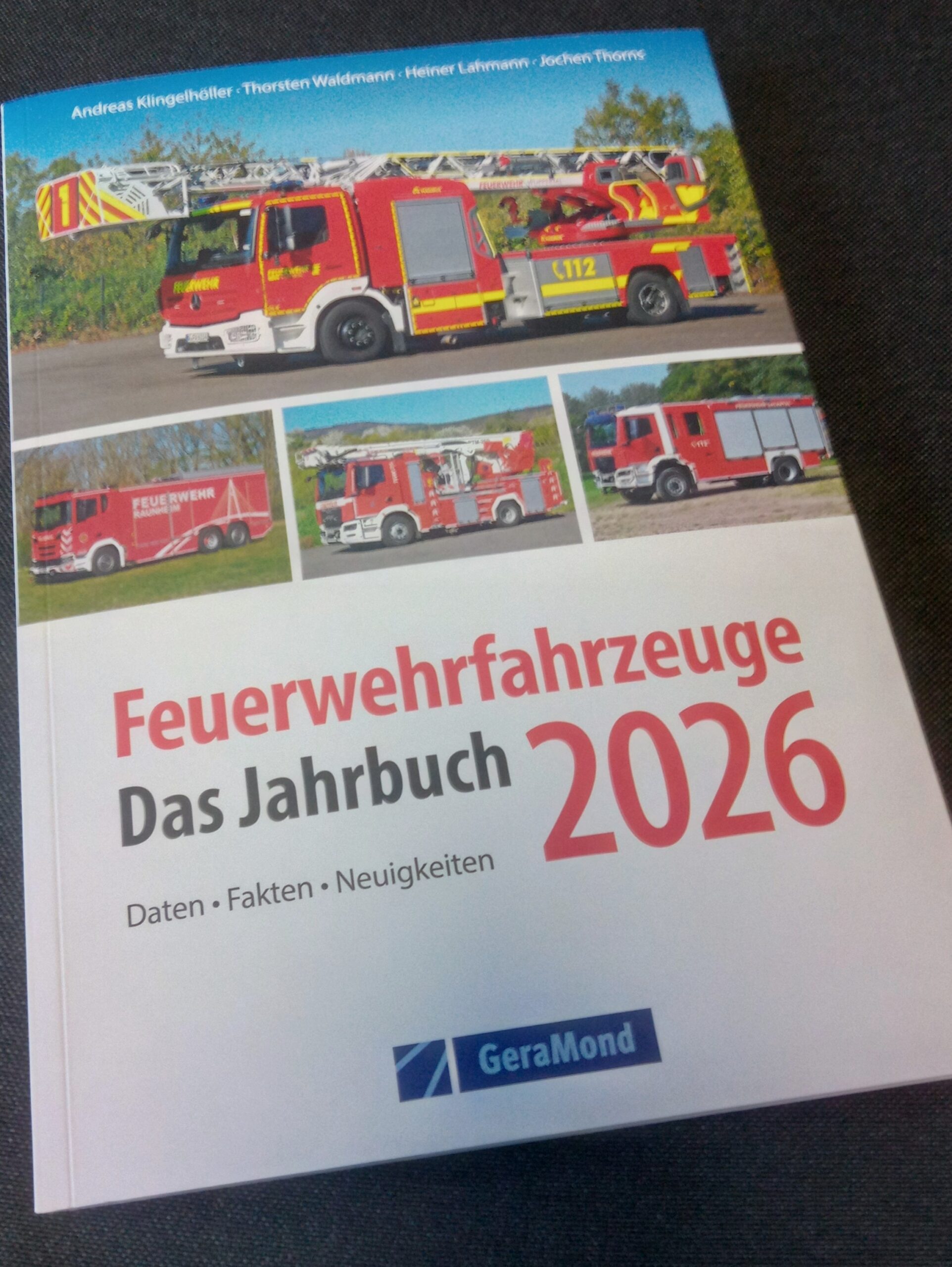 Klingelhöller, Andreas; Waldmann, Thorsten; Lahmann, Heiner; Thorns, Jochen: Feuerwehrfahrzeuge 2026 – Das Jahrbuch. München GeraMond Media GmbH 2025. 168 S.; Paperback; 16,5 x 23,5 cm; ISBN 978-3-9870224-7-0; EUR 19.99