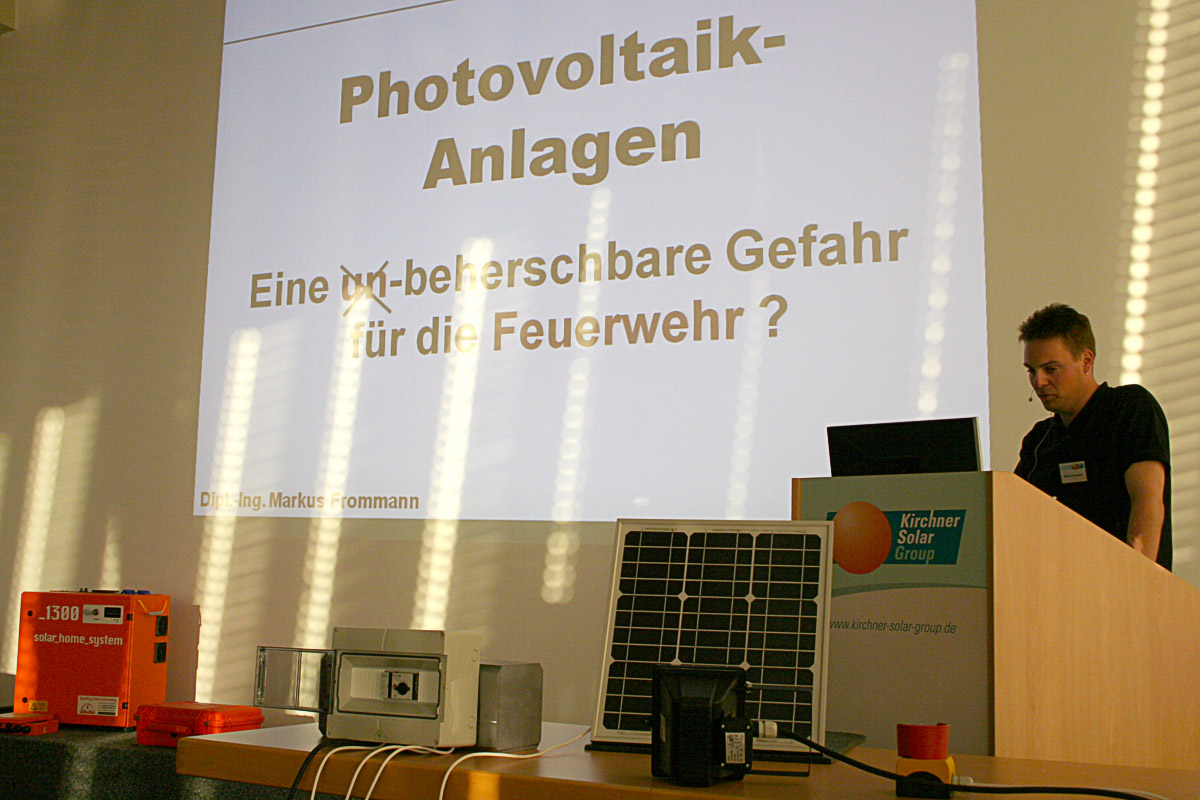 Veranstaltung für Feuerwehren bei der Kirchner Solar Group über das Verhalten bei Brand von Gebäuden mit PV-Anlagen